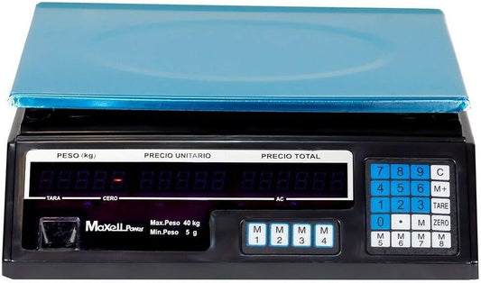 Báscula Comercial Digital 40kg para Frutas y Verduras con Batería Integrada